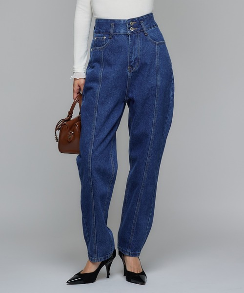 テーパードデニム【ポイント】 すとんと落ちるテーパードシルエットが魅力のデニムパンツ。無駄のないラインで脚をすっきりと見せ、洗練された印象を演出。どんなトップスとも自然に馴染み、スタイリング全体を引き締めてくれます。【デザイン・シルエット】 ハイウエスト仕様で脚長効果を発揮し、フロントの切り替えがIラインを強調することでスタイルアップを叶えるパンツ。すとんと落ちるシルエットが縦のラインを際立たせ、洗練された印象を演出します。フロントには並んだ2つのボタンがアクセントとなり、シンプルながらもデザイン性のある一枚に仕上がっています。【おすすめのスタイリング】 Tシャツやブラウス、スウェット、ニットなどどんなアイテムでもマッチし、オールシーズンお使いいただける万能アイテム。デザイン自体はシンプルなので柄物やカラー物とも好相性です。【素材】しっかりとした生地感でありながら、肌に馴染む柔らかさが魅力。自然な風合いとさらりとしたタッチで心地よく着用でき、デイリーに取り入れやすい快適さを兼ね備えています。履きこむほどに馴染み、リラックスした着心地を楽しめる素材感です。※ご覧のモニター環境や撮影環境により実の商品と多少色味が異なって見える場合がございます、ご理解の程を宜しくお願い致します。▼商品のお気に入り登録をおススメ致します☆サイズやカラー横のハートマークをクリック!完売カラーの再入荷や、ラスト1点の通知、セールの際の通知を受ける事ができます。お気に入り登録も宜しくお願い致します♪