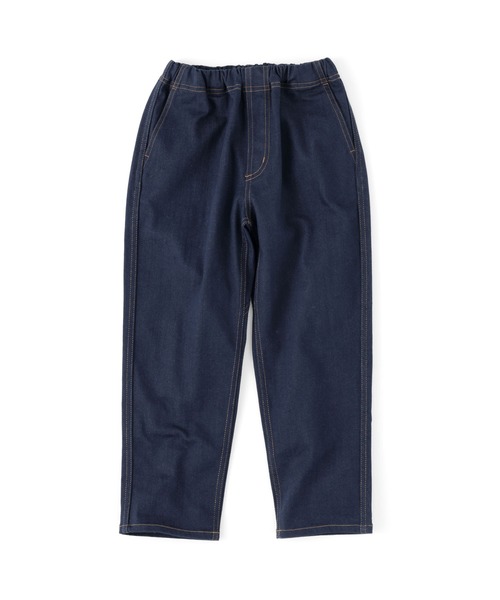 インディゴ染めに比べ色移りしにくい。肌あたりが優しい縫製仕様。綿はアフリカの自然が育てました。 2025年シーズンから”肌ごこち”がさらに良くなりました。 【素材】 インディゴ染料を使用せずに、デニム生地のような見え方を表現しました。インディゴ染めの生地と比べて色落ちしにくいデニム調生地を使用しています。 【デザイン】 程よいワイドシルエットで、デザイン性だけでなく動きやすさもあるパンツです。マチ付きにすることで脚の可動域を広げ、活発に動けるパンツに仕立てました。ウエストは総ゴム仕様で調整口があり、ゴムを引き出して縫い止めることで、体型や成長に合わせて調整可能です。ゴムは固定していないため、取り替えもできます。おさがりにも配慮した、永く着ていただくための工夫です。 【仕様】 伸縮性:あり 透け感:なし フィット感:ゆったりめ 股上:普通 お取扱い上のご注意 : ●本体に再生ポリエステルを25%使用しています。 お取扱い上のご注意2 : ●濃色製品は使用中の摩擦や濡れた状態での接触により色移りする事があります。洗濯の際は他のものと分けて洗ってください。 お取扱い上のご注意3 : ●素材の特性上、着用や洗濯・クリーニング時の摩擦により毛羽立ち、毛玉が発生します。その際はお早めに毛玉取り器などで手入れをしてください。 お洗濯上のご注意 : ●淡色製品には蛍光増白剤入り洗剤を使用しないでください。 お洗濯上のご注意2 : ●アイロンはあて布を使用してください。