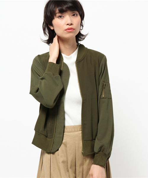 シフォン×コンパクトな作りでメンズライクになりすぎず、コーデのポイントになるMA-1。 まだ羽織は早い… と思われるかもしれませんが、薄手なのでさらっと着ていただけます。 前を閉めるとさらにスッキリ。 寒くなったら薄手のパーカーを重ねても◎ 着丈は長すぎずボトムを選びません。