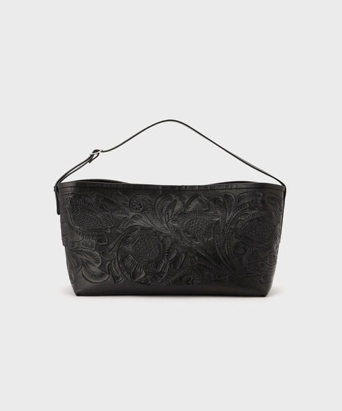 横長シルエットのスマートなスクエア型バッグ。ワンハンドルのおしゃれなルックスに、たっぷり荷物が入る容量を備えた実力派デザインです。ワンカラーのシンプルなデザインでON/OFF兼用でご愛用いただける万能アイテムです。伝統的な草花を手彫りした定番のCARVING TRIBES(カービングトライブス)シリーズ。上質な牛革は使うごとにオリジナルのヴィンテージ感を生み出し、経年変化により表情の変化もお楽しみいただけます。軽くて丈夫、さらにどんなスタイリングとも相性が良く、持つだけでコーディネートが引き締まる愛用者の多いアイテム。バッグの他ウォレットやブックカバー、ポーチなど小物類までバリエーション豊富にご用意しています。※天然皮革製品の購入にあたっての注意点※ 天然素材を使用し、手作業を加えている為一点一点風合いや色の出方・サイズが若干異なります。予めご了承下さいませ。 この製品は天然皮革を使用していますので、使用を重ねるうちに色合いや風合いの変化などが見られます。 使用中に摩擦により多少染料が他のものに付くことがあります。必要以上に摩擦しないよう注意して下さい。 淡い色の衣類との着用は出来るだけお避け下さい。 雨や汗、水に濡れた場合は特に移染しやすくなります。出来るだけ濡らさないように注意してください。 乾燥させる場合は必ず陰干ししてください。天日、直火は硬化の原因になりますので、絶対にお避け下さい。 日光や蛍光灯の光、熱、湿気は変質、変色、硬化、カビの原因になりますのでくれぐれも注意ください。
