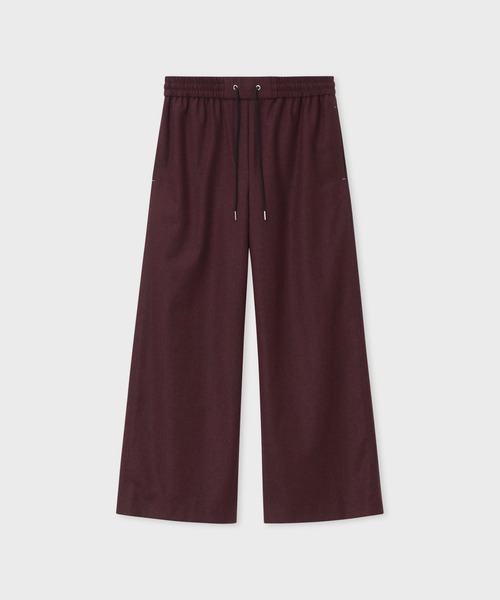 イタリアのファブリックメーカーであるZIGNONE社製のウールフランネル生地を使用したワイドパンツ。 カシミヤ混のなめらかな風合いは、肌に触れるたびに心地良さを感じさせます。 インポートならではの深みのある複雑な色合いが、コーディネートに上品なアクセントをプラス。 ウエストはゴムとドローコード仕様で、リラックスしたストレスフリーな履き心地を実現。 上質な生地使いと美しいシルエットは、ビジネスシーンにも対応できる、キレイめな印象を与えます。 同素材のジャケットと合わせれば、程良いリラックス感のある、こなれたセットアップスタイルが完成。 フォーマルな場面でも、カジュアルダウンしたい休日にも、幅広く活躍する万能アイテムです。 ※商品の画像はサンプルです。実際の商品と仕様が若干異なる場合がございますが予めご了承くださいませ。 ________________________ [お買い物をお楽しみ頂くために] □商品のお気に入り登録 完売カラーの再入荷通知やラスト1点の通知など、商品情報をお届けします。 □ショップ・ブランドのお気に入り登録 新商品や再入荷など、いち早くブランドの最新情報をお届けします。 ________________________