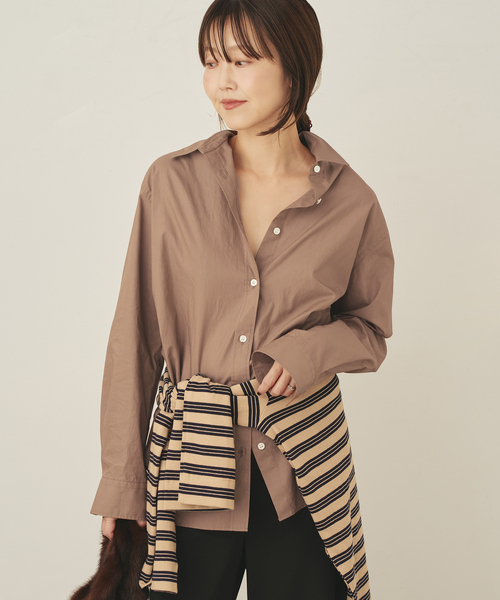 程よいハリ感とワッシャー感が特徴のシャツ。シンプルながらナチュラルな表情で、こなれた雰囲気漂うアイテム。コットン100%を使用しているため着心地が良いのもポイント。脇にもボタンが付いているためカシュクール風にアレンジすることも可能で、一枚着るだけでサマになります。ニットとのレイヤードにも合わせやすいレングスで、シーズン問わず活躍するアイテムです。**********************透け感:ホワイトのみややあり裏地:なし伸縮性:なし光沢感:なし生地の厚さ:普通********************** ※取り扱いについては、商品についている品質表示でご確認ください。 ※ 店頭及び屋内外での撮影画像は、光の当たり具合で色味が違って見える場合があります。商品の色味は、商品アップ画像をご参照ください。また、お客様のお使いのPCのモニター環境などにより色味が違って見える場合があります。予めご了承の上ご注文ください。本体:手洗い可能