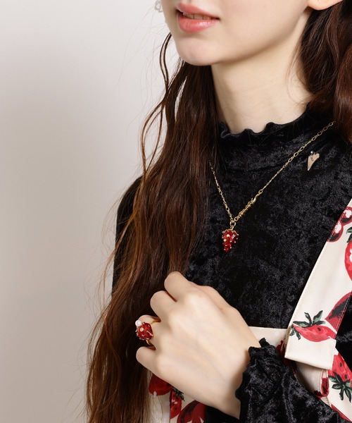 MILK 2025 Winter ◾︎愛らしい苺のモチーフを繊細にデザインしたリング ◾︎苺の実にはパールやストーンをちりばめて上品な輝きをプラス ◾︎ハートのロゴプレート付きで可愛さと上品さを両立したデザインです♪ ♡ Colors ♡ A,ピンクゴールド×ローズ B,ゴールド×レッド C,シルバー×ブラック ♡ Size ♡ S:9号 / M:12号 ♡ Material ♡ 錫合金 / 真鍮 ♡ おすすめのスタイリング ♡ ▪Berry Kiss オーバードレス (code : 98714644) ▪Kiss Kiss ブラウス (code : 98714642) ▪バブーシュカ カチュ (code : 98714685) ▪Berry Kiss ネックレス (code : 98714683)