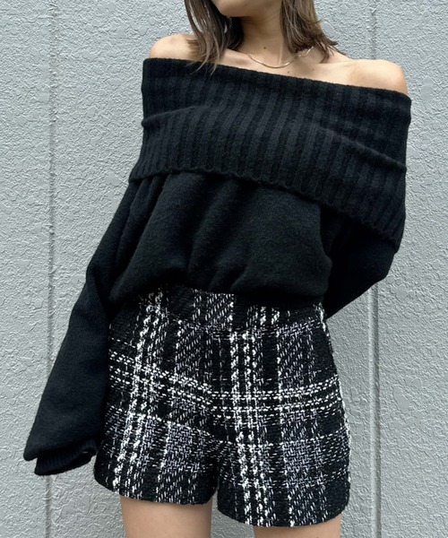 ■detail たっぷりとボリューム感があり丸みのあるフォルムがレディライクで可愛いオフショルニットトップス。太めリブでワイドな折り返しが肩回りをしっかりと抑えてくれます。 鎖骨や肩を綺麗に見せる絶妙な開き具合で、ヘルシーな色気を演出。 たっぷりと袖口にかけてたまる袖のボリュームが印象的です。 起毛感ある糸がふわっと柔らかい風合いに仕上げてくれ女性らしさを更に引き立ててくれます。 落ちついた色味を選ぶことで甘さを軽減させているので子供っぽくならず、大人でも取り入れやすいです。 デコルテラインが綺麗にでるのでピアスやネックレスなどの小物も映えて◎ 太ももまわりがぴったりとしたフルレングスやコンパクトなミニボトムで合わせるとコーデにメリハリがでてスタイリッシュに着ていただけます。 【生地感】 透け感:なし 裏地:なし 伸縮性:なし 生地の厚さ:普通 <おすすめ便利機能> ▼商品のお気に入り登録▼ 商品ページ内のハートマークをクリック! 完売カラーの再入荷や、 ラスト1点の通知、 お得なお値下げの通知を受ける事ができます。 ▼ブランドのお気に入り登録▼ 新商品や再入荷など、 ブランドのお得な情報をいち早くお知らせします。 ぜひご活用ください!