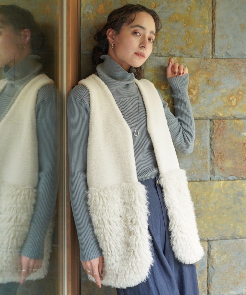 ■POINT 毛足が長く、ややウェーブがかったフェイクファーがリアル見えしてリッチな印象のファーがポイントのベスト。そのファー素材にボアを組み合わせてMIX感がかわいいファーベストに仕上げました。1枚で着映えするのでシンプルな着こなしに合わせるだけでもスタイリングが決まります♪ベースは背中部分はニット素材なので、伸縮性があるので着心地が◎背中のニットですっきりしているのでファーアイテムでも着ぶくれせずにすっきりと着こなして頂けます。 ■FABRIC 密度がしっかりとして上品な色合いのファーとボアを使用しているのでリアル見えする素材感。後ろのニットもしかりとしたミラノリブ編となっています。 ………………… 透け感:なし 裏地:なし ………………… ★商品のお気に入り登録 登録すると、完売しても再入荷時に通知を受け取ることができます。 ほかにもお得な特典があるかもしれません♪ ★ブランドのお気に入り登録 新商品や再入荷などの情報を受け取ることができますので、是非ご登録ください♪