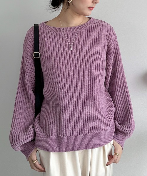 ベロアのような艶感とラメがアクセントのニット【point】・ぽわんとしたボリューム袖とだぼっとしすぎない見頃のシルエットバランスが◎・ボートネックで首元に抜け感をプラス・さりげないラメが上品で、カジュアルにもフェミニンにも合わせやすい・ゆったりシルエットで柔らかく楽な着心地【fabric】・もちっとした素材感・柔らかいラメの入ったモール糸・毛玉になりにくいストレスフリーな素材透け感:なし裏地:なし伸縮性:あり光沢感:ラメあり生地の厚さ:普通【注意事項】・画像の商品はサンプルです。実際の商品と仕様、加工が若干異なる場合があります。・サイズ表記はあくまで目安となります。・取り扱いについては、商品についている品質表示でご確認ください。・照明の関係により、実際より明るく見える場合がございます。またパソコンなどの環境により、製品と画像のカラーが若干異なる場合がございますので、予めご了承くださいませ。■お気に入り登録がオススメです!■《商品のお気に入り登録》カラー・サイズ選択の横の「♡」をクリックで簡単に登録できます完売カラーの再入荷や在庫が1点になったとき、セールになったときに通知をお届けします《ブランドのお気に入り登録》ページ上部のブランド名の「♡ お気に入りブランドに追加」をクリックで簡単に登録できます新商品の情報やイベントなどお得な情報をいち早くお届けします是非、ご登録お願いします♪