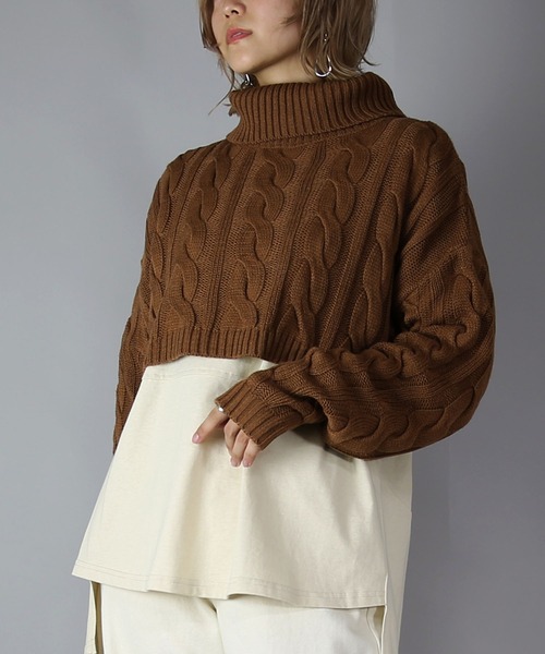 ケーブル編みが大人可愛い印象に。重ね着コーデが楽しめるショート丈のニット♪ざっくりとしたケーブル編みでこなれた印象のニット生地。適度に地厚の生地感なので、寒い日でも暖かな着心地です。見た目からも季節感があるので、秋冬にぴったりです。こなれ感をプラスしつつ、首元まで暖かいタートルネック。ゆったりとしたサイズ感なので、合わせるアイテムも幅広く選べて、重ね着コーデが楽しめるショート丈のニットです。Mスタッフが着用してみました。◆身長:160cm 着用サイズ:M-L 普段の着用サイズ:M◆着丈(最短位置) : 裾位置はウエストくらい身幅 : 大きめアームホール : 大きめLスタッフが着用してみました。◆身長:163cm 着用サイズ:L-LL 普段の着用サイズ:L◆着丈(最短位置) : 裾位置はウエストくらい身幅 : 大きめアームホール : 大きめ《生地の透け感》編み目にニット特有の透け感がございます。《便利な機能のご紹介》◇商品のお気に入り登録完売カラーの再入荷通知、ラスト1点の通知、セールの通知を受け取ることができます。◇当ショップのお気に入り登録新商品&再入荷等、イベント等のお得な情報を受け取ることができます。