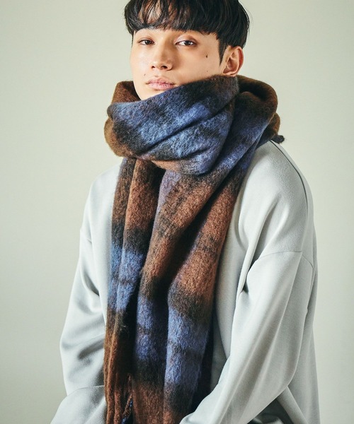 チェック柄のブークレーマフラー。 ふんわりとした柔らかな質感で、首元をやさしく包み込んでくれる1枚です。 長さがあるのでボリューム感がでるアイテム。 カジュアルなスタイリングに合わせやすいカラーをご用意しました。