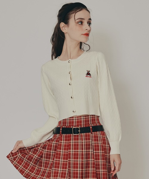 ファン待望のNEW COLOR!イエロー・グリーン登場♪REDYAZELのオリジナルアイコン「Azely(アゼリー)」の刺繍がワンポイントになった、ミニケーブルニットカーディガン。クラシカルなケーブル編みと、ゴールドボタンが上品さを引き立て、コーデ全体を華やかに仕上げてくれます。トレンドのショート丈でスタイルアップ効果も抜群。ハイウエストボトムやプリーツミニとの相性も◎。今季はベレー帽やロングブーツ、ファーバッグなどの小物と合わせて、秋冬らしいトラッドコーデがおすすめです。透け感:[ホワイト]ややあり [その他]なし裏地:なし伸縮性:あり生地の厚さ:普通F:着丈41cm 身幅44cm 肩幅33cm 袖丈58cm