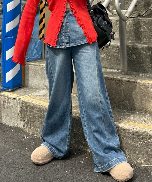 ラップスカートとパンツが一体化した優秀デニム 履くだけでこなれ感がUP! ▼デザイン ・ラップスカートが付いているデザインなので気になる腰回りもカバー ・パンツ部分は裾に向かって少し広がるシルエットで足長効果抜群 ・履くだけでこなれ感がUPする“ひとクセ”デニムはオールシーズン着られるのも嬉しいポイント ・やわらかい素材感なのでデニム特有のゴワつきもなく着心地◎ ・色落ちの加工感がおしゃれ ・少し長めの丈感なので小柄な方は裾を折って履いてもかわいい ▼コーディネート ・ラップスカート付きでデザインにひとクセあるデニムは、シンプルなトップスとの相性が◎ ・レッドのトップスを合わせるとカラーが映えてかわいい ・これからの季節、ボリュームのあるニットとの合わせも鉄板 ・足元はファーの素材を取り入れると一気に秋の装いに -------------------- 裏地:なし 透け感:なし 厚さ:厚め 伸縮性:なし -------------------- ※可能な限り実物に近いカラーにて掲載しておりますが、 ご使用のパソコンおよび携帯電話の閲覧環境によっては、 実際の色味と異なって見える場合がございます。予めご了承ください。 ※詳しいお手入れ方法は商品タグをご参照ください。 【最新情報はinstagramをチェック!】 ★Alley Tokyo 公式instagram @alleytokyo ★Alley Tokyo Director @hanai_chi7997 【お買いものにおすすめの便利機能!】 ★商品のお気に入り登録 完売カラーの再入荷の時や、ラスト1点の時、セールになった時にお知らせします。 ★ブランドのお気に入り登録 商品や再入荷、セール情報など、いち早くブランドのお得な情報を受け取ることができます。 ぜひご活用ください!