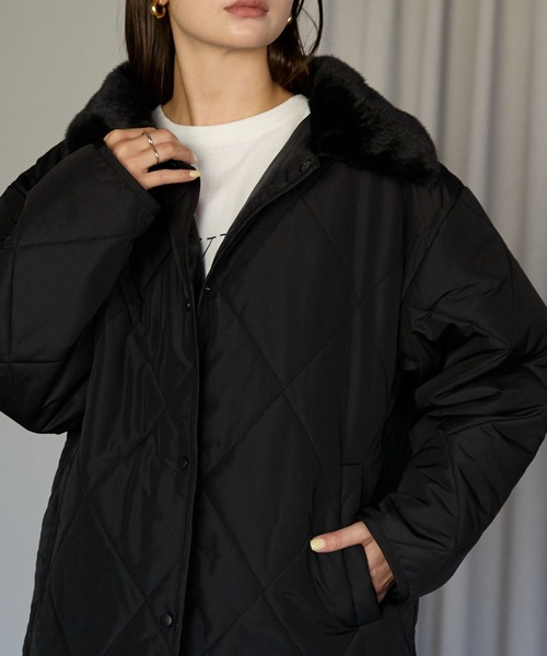 \\衿ファー付きキルトジャケット//大人の上品さを引き立てる、衿ファー付きアウターダイヤキルトが印象的な中綿ジャケットに、ふわふわのファー衿をプラス。顔まわりをやさしく包み込み、女性らしい柔らかさを演出します。程よくゆとりのあるシルエットで、厚手のニットの上からも羽織りやすい一枚。軽やかな着心地ながらもしっかりと暖かく、冬本番まで活躍します。✔️ フェイクファー衿でアレンジ自在✔️ 軽くて暖かい中綿仕様✔️ 上品な艶感のマイクロタフタ素材を使用✔️ 腰まわりをカバーする安心のミドル丈【STYLING POINT】・ファーを主役にフェミニンな印象に、スタンドカラーにしてカジュアルなスタイルに。・ワイドパンツやロングスカートと好相性・ブーツを合わせたきれいめスタイルにもおすすめ・マフラーを重ねて季節感をプラス■TRIANGLE PALETTE/トライアングルパレット何気ない日常も、どこか特別に。シンプルだけど、ちゃんと今の気分を感じられる。大人の毎日にそっと馴染み、自然体の自分を引き立てるスタイルを提案します。@trianglepalette_zozotownインスタグラムでは発売前のアイテムやクーポン・お買い得情報など様々な情報を配信中!■お気に入り登録がオススメ・「商品のお気に入り登録」で再入荷通知や、ラストの通知、セール通知も受け取ることが出来ます。・「ブランドのお気に入り登録」で新商品や再入荷など、お得な情報を受け取ることが出来ます。※商品画像は撮影時の光や角度により、実物の色味と異なって見える場合がございます。※生産時期により色・素材・サイズ感など多少異なる場合がございます。予めご了承ください。