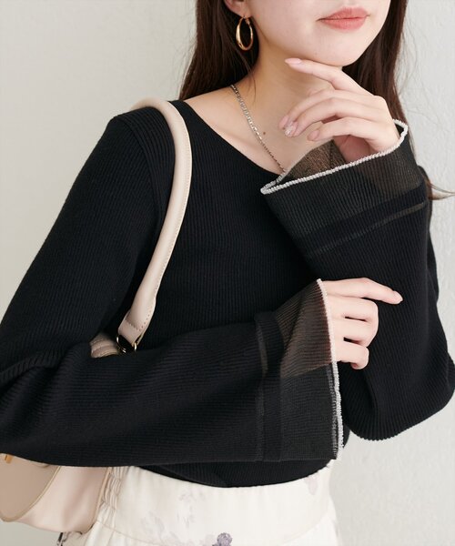 【2025AW natural couture】 袖口シアーフレアニット ■Design 袖口のシアーなフレアが、さりげなくも華やかな印象を与えるニットトップスです。 袖口のフレアは、手元を美しく見せるだけでなく、コーディネートに動きと軽やかさをプラスします。 カジュアルな普段使いから、ちょっとしたお出かけまで、幅広いシーンで活躍してくれる一枚です。 身頃はすっきりとしたシルエットなので、ボリュームのあるボトムスとも相性抜群。 ■Styling 普段使いには、デニムやカジュアルパンツと合わせて、リラックス感のあるスタイルがおすすめです。 足元はスニーカーやフラットシューズで、抜け感を出すとこなれた印象に。 きれいめなスタイリングがお好みの場合は、タイトスカートやフレアスカートと合わせて、上品な雰囲気に。 パンプスやブーツを合わせれば、オフィススタイルにも対応できます。 ワンピースやサロペットのインナーとして着用する際は、袖口のシアー感がアクセントになり、コーディネートを格上げしてくれます。 シンプルなデザインなので、柄物のボトムスやアウターとも合わせやすく、コーディネートの幅が広がります。 ■Fabric 滑らかな肌触り。 ================== 透け感:オフホワイトややあり 裏地:なし 伸縮性:あり 光沢感:なし 生地感:滑らかな生地感 ================== ※着用、お取り扱いの際は、商品に付いている品質表示とアテンションタグを必ずご確認ください。 【お気に入り登録でお得な情報がいっぱい】 ・「商品のお気に入り登録」で再入荷通知や、ラスト1点の通知、セール通知をいち早く受け取ることができます。 ・「ブランドのお気に入り登録」で新商品や再入荷など、お得な情報を受け取ることができます! ※店舗の入荷時期は商品によって異なります。 店頭の在庫状況につきましては各店舗にてお問い合わせください。 ※撮影時の光の関係で、画面上の画像と実際のお色とでは若干の色差が生じる可能性がございます。 また、ご覧いただいているモニター画面や、お使いのブラウザによっても、お色の違いがございますことをあらかじめご了承くださいませ。 20251010 2025AW_natu 25AW