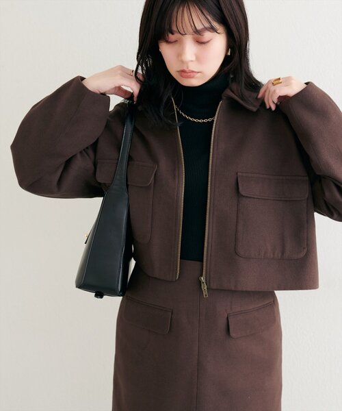 【2025AW natural couture】 衿つきWzipジャケット■Designクラシカルな襟付きデザインに、エッジの効いたダブルジップを組み合わせることで、甘さと辛さの絶妙なバランスを実現しました。ジップの開け方次第で、様々な表情が楽しめるのもポイント。フルジップでスタイリッシュに、少し開けてインナーを覗かせれば抜け感を演出できます。短めの丈感は、スタイルアップ効果も期待できる優れもの。ハイウエストのボトムスと合わせれば、脚長効果も抜群です。また、両胸にあしらわれたフラップポケットは、デザインのアクセントとしてはもちろん、機能性も兼ね備えています。■Styling着回し力の高さもこのジャケットの魅力。カジュアルなデニムやTシャツに合わせるのはもちろん、ワンピースやスカートと合わせて、フェミニンな着こなしも楽しめます。足元は、スニーカーでカジュアルに、ブーツで大人っぽく、合わせるアイテムによって、雰囲気を変えられるので、様々なシーンで活躍すること間違いなしです。インナーには、シンプルなカットソーやニットを合わせるのがおすすめ。肌寒い季節には、タートルネックニットと合わせて、暖かくおしゃれに過ごすのがおすすめ。0352010610 ポケット付き台形スカートと合わせて、セットアップ風こなれ感のある着こなしもおすすめです。■Fabric滑らかな肌触り。■Series0352010610 ポケット付き台形スカート==================お手入れ方法:手洗い透け感:なし裏地:あり伸縮性:なし光沢感:なし生地感:滑らかな生地感==================※着用、お取り扱いの際は、商品に付いている品質表示とアテンションタグを必ずご確認ください。【お気に入り登録でお得な情報がいっぱい】・「商品のお気に入り登録」で再入荷通知や、ラスト1点の通知、セール通知をいち早く受け取ることができます。・「ブランドのお気に入り登録」で新商品や再入荷など、お得な情報を受け取ることができます!※店舗の入荷時期は商品によって異なります。店頭の在庫状況につきましては各店舗にてお問い合わせください。※撮影時の光の関係で、画面上の画像と実際のお色とでは若干の色差が生じる可能性がございます。また、ご覧いただいているモニター画面や、お使いのブラウザによっても、お色の違いがございますことをあらかじめご了承くださいませ。202510102025AW_natu25AW