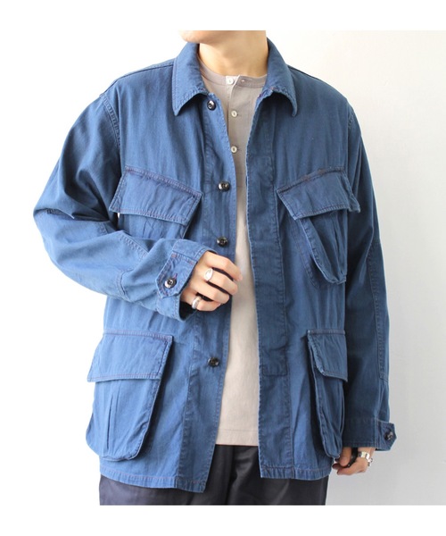 60~70年代に亜熱帯用に作られた米軍のジャケットをデザインソースに作成したミリタリージャケットです。す。素材はオリジナルで作成した経糸、緯糸ともに先染めのインディゴ糸を使用した9ozデニム。半年間着こんだイメージで色落ちさせた縦落ち感が美しいカラーです。ジャングルファティーグ特有のポケットは、デザインはそのままにバランスよく配置し直し、エルボーパッチやタブ付きの袖はその継続型とされるBDUジャケットのデザインをミックスしています。ジャングルファティーグ特有のフロントポケットは、デザインをそのままにバランスの良い配置に直し、ジャングルファティーグの後継型とされるBDUジャケットのエルボーパッチやタブ付きの袖をミックスしたデザインになっています。カジュアルにはもちろん、羽織としてキレイめなスタイルの外しとしても重宝します。女性は袖をまくって少しオーバーサイズにスカートやワイドパンツなどと合わせてもカッコよく合わせていただけます。【A VONTADE】ア ボンタージ「古きよきアメリカ、ヨーロッパのワーク、ミリタリー、スポーツを感じる素材、縫製技術、ディテールをソースに、現代に合うシルエットやデザインの再構築」をコンセプトに2003年にスタート。 素材の持つ匂いを生かす事を第一に考え、それに見合った縫製技術、ディテール、付属を当て込んだミニマルデザイン+αで、ワードローブにいつまでも残る物作りを目指してます。