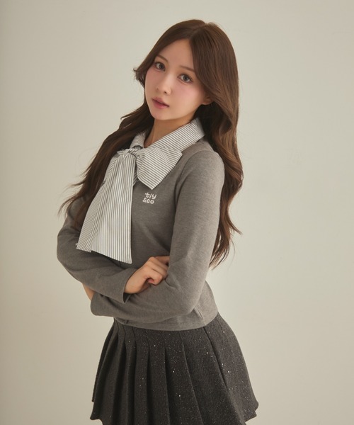 TITTY&CO.2025AW collection ♡存在感たっぷりのリボンで魅せる♡クラシカルガーリートップス♡ [detail] 大きめのリボンが視線を惹きつける、上品で華やかなガーリートップスです。 コンパクトなシルエットに映えるリボンデザインが、顔まわりをパッと明るく華やかに見せてくれます♡ 身頃には控えめな刺繍ロゴ入りで、甘さの中にきちんと感をプラスしたバランスの良い1枚です。 --------------------------裏地:なし 透け感:なし 伸縮性:あり生地の厚さ:普通-------------------------- [styling] タイトスカートやフレアスカートと合わせて、フレンチガーリーな上品コーデに仕上げるのがおすすめ♡ デニムと合わせてカジュアルダウンすれば、甘さ控えめなきれいめカジュアルにも◎ ジャンスカやワンピースのインナーとしてもリボンが映え、レイヤードコーデに大活躍します♪ ※照明の関係により、実際よりも色味が違って見える場合がございます。 また、パソコン・スマートフォンなどの環境により、若干製品と画像のカラーが異なる場合もございます。 予めご了承くださいませ。 ※画像の商品はサンプルです。 実際の商品と仕様・加工・サイズが若干異なる場合がございます。 また、生産時期により、サイズやカラーに誤差が生じる場合がございます。 予めご了承くださいませ。 ※返品・キャンセルについて 着用、洗濯後の返品、交換は致しかねます。 商品到着後、着用前に商品を確認して頂きますようお願い致します。 【商品のお気に入り登録】 完売カラーの再入荷や、セール通知などお得な情報を受け取ることができます。 ぜひご登録下さい♪ 【ブランドのお気に入り登録】 新作入荷や再入荷、セールやクーポンイベントなど注目のブランド情報を受け取ることができます。 ぜひご登録ください!!