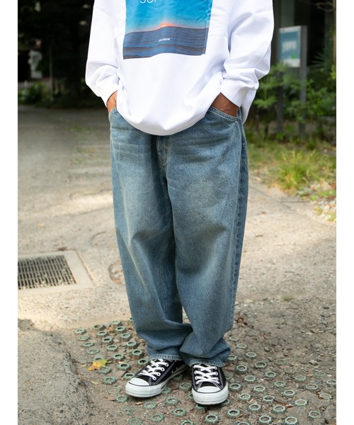 究極の履き心地を追求し、シルエットにとことんこだわったAPPLEBUMの新型デニムパンツ「Selena」。 最大の特徴は、深めに設定した股上と、腰からももにかけてのリラックス感あるワイドシルエット。 そこにしっかりとテーパードを効かせることで、ルーズすぎず洗練された印象に仕上げました。 ローカットスニーカー着用時も、裾を引きずる心配はありません。 日本人の体型に合わせて、従来のAPPLEBUMデニムよりもレングスと総丈をやや短めに設計。 12ozのデニム生地で、独特なムラ感がヴィンテージライクな表情を演出。 バイオ酵素とストーンウォッシュを組み合わせることにより、自然の色落ち感を表現。 さらにストレッチ入り生地を採用し、締めつけ感を感じさせず、動きやすく快適な着心地を実現しました。 街中でも、スケートやBMXなどのアクティブなシーンでも活躍できる、機動性の高い1本です。 裾に向かって自然に絞られたラインは、スニーカーとの相性も抜群。 バックポケットのステッチでは「リンゴみたいな可愛いお尻」を遊び心たっぷりに表現。 腰の本革パッチには、ブランドカルチャーを象徴する“バスケットボール”をイメージしました。 ジップフライ仕様。 ●ブランドのお気に入り登録 完売カラーの再入荷時やラスト1点の通知を致します。 ●商品のお気に入り登録 新商品や再入荷等、いち早くブランドの情報を受け取ることができます。ぜひご活用下さい。 ========================== 2005年に東京でブランドをスタートし、日本のみならず世界中で高い評価を受ける〈APPLEBUM〉。 A Tribe Called Questの名曲『Bonita Applebum』をブランド名の由来とし、ヒップホップの黄金期とされる80~90年代を生で体感してきた感覚をウエアに落とし込んでいる。 これまでに〈STÜSSY〉や〈UNDEFEATED〉などのブランドや、アーティスト・映画といった様々なコラボレーションを実現。 中でも伝説のヒップホップグループ「Wu-Tang Clan」とのコラボレーションは、彼らが影響されたカンフー映画のモチーフを日本の名産品であるスカジャンに落とし込み、90’sヒップホップを東京的解釈で発信したAPPLEBUMならではのコレクションとなった。 「反骨と革新とユーモア」を哲学として掲げ、アメリカやヨーロッパのストリートと肩を並べられる、日本や東京ならではの価値観や表現を誇りに常に進化し続けているブランドである。 ==========================