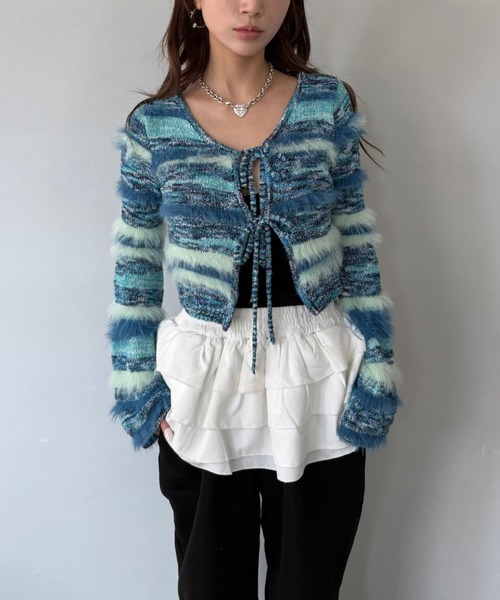カラーリング豊かなボーダーパターンとフェザーヤーンのアクセントが目を惹くカーディガン。 袖にフェザーヤーンを織り交ぜた立体的なデザインで、一枚羽織るだけで華やかさをプラス。 sanw25a031とセットで着こなせば統一感のある着映えスタイルに、単品使いではカジュアルからレイヤードまで自由度高く着回せる万能アイテム。 ストリートユースにもデイリーコーデにも対応でき、シーズンレスに使いやすい存在感抜群のセットアップです。 詳細補足 仕様:フロントリボン、ファー×ボーダー編み 伸縮性:ややあり 透け感:なし 光沢:なし 裏地:なし 厚さ:やや薄め サイズ感:普通 【SANSëLF】 ▼お気に入り登録をおすすめします▼ ♡をクリック! お得なセール情報や、人気完売商品の再入荷情報 ラスト1点の通知など、耳寄りなお買い得情報をいち早く受ける事ができます。 ブランド【SANSëLF】のお気に入り登録もご一緒にお願い致します。 取扱注意事項 ※サイズは、測定方法と測定者によって多少の誤差がありますのでご了承下さいませ。 また体型によって、サイズ感に個人差がございます。(平置き採寸)※商品によってはシワがつきやすく、 畳みジワや折りジワなどが強く出る場合がございます。 その際は加湿した風呂場に数時間干すか、スチームアイロンでのお手入れをお勧めしております。 ※生地の素材上、においが気になる場合がございます。その際は陰干しして頂くと、ほとんど感じにくくなります。 ※レース等の繊細な素材を使用している場合には、お取り扱いにご注意下さい。 ※デニムを使用した製品は、インディゴ染めをしています。汗や摩擦により移染しやすいので、 白色、淡色の組み合わせや重ね着はお避け下さい。 ※ニット素材を使用した製品は、重みで伸びやすくなりますのでハンガーでの保管はお控えください。 ※お洗濯の際には、品質表示の指示に従ってください。必要であれば専門店にご相談ください。 家庭でご洗濯できる商品に関しては、洗濯専用ネットをご使用の上、個別での洗濯をお勧めいたします。 お色物は、色移りする可能性がございます。 ※着用画像は撮影状況や光によって、多少異なる場合がございますので、置き画像をご確認下さい。 ※2023年7月1日より、環境に配慮した取り組みの一環として、紙のアテンションタグを廃止しております。