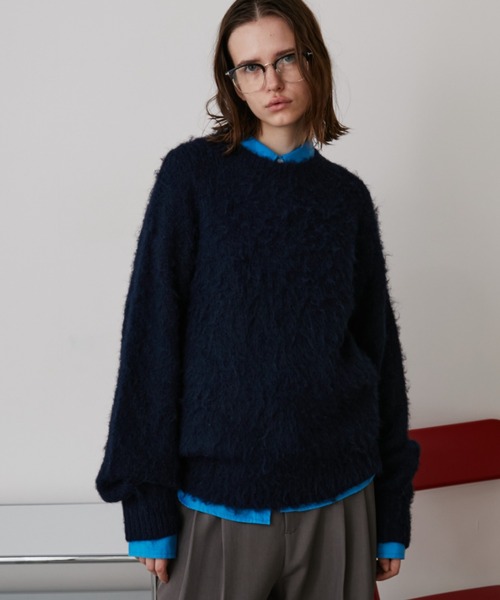 存在感のあるMIX糸を使用したシャギークルーネックニット■designふんわりとしたシャギー素材がシーズンムードを高めてくれるクルーネックニット。やわらかな風合いで着心地もよく、優しい印象に。程よくルーズなシルエットが、一枚で抜け感のあるスタイリングを叶えます。少しカラーの違うMIX糸を取り入れたシャギーニットが程よいアクセントに。シンプルながらも表情のある素材感で、大人のリラックススタイルにぴったりの主役級ニット。秋冬シーズンに着回しの効くおすすめの一枚です。■materialふんわりと毛足の長いシャギーニットを使用やや緩めに編み上げラフな印象に。■stylingシンプルなデザインとややルーズなシルエットでボトムを選ばない万能ニット。シャツやタートル、ロンTなどとのレイヤードも◎■お取扱い上の注意素材の特性上毛羽が落ちやすく、他のものに付着することがあります。毛羽抜けは摩擦や静電気により特に発生しやすくなります。毛並みがあるものは、柔らかいブラシで整えてください。毛羽が付着した場合は、ブラシやテープ(粘着性が弱いもの)で取り除いてください。保管の際は、不織布カバーに入れるなど他のものと接触しないようにご注意ください。透け感:ややあり光沢感:なし伸縮性:あり裏 地:なし厚 み:普通シャギー/ニット/カラーニット/冬服---------------------------------------------------▶商品のお気に入り登録完売カラーの再入荷通知やラスト1点の通知などお得なプライスダウンの情報も受け取ることができます。ぜひご登録ください◎▶ブランドのお気に入り登録新商品や再入荷など、ブランドの最新情報をいち早くお知らせします!ぜひご登録ください◎---------------------------------------------------※撮影環境の光や角度により、実物と色味が異なる場合がございます。※着用、お取り扱いの際は、商品に付いている品質表示を必ずご確認ください。※生産時期により色味・加工感など多少異なる場合がございます。予めご了承ください。
