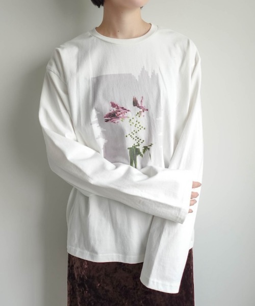 花々の儚い美しさをオリジナルロングTシャツに昇華デザイナー自身が撮影した花束や一輪の花をグラフィックアートにて再構築。カジュアルながらもアート性の高い一着に。◼︎Point・ゆったりとしたオーバーサイズ。・軽やかなコットンカットソースタッフレビュースタッフA身長:157cm普段のサイズ:Sサイズ骨格:ナチュラルよくある花柄とは違って、エッジが効いたグラフィックデザインが可愛いです。素材は柔らかくて着心地も良いです。やや長めの袖と丈感で、体のラインを拾いにくいのも嬉しいです。薄手なので真冬は重ね着が必要です。--------------------------------透け感 :ホワイトややあり、他なし裏地 :なし伸縮性 :ややあり光沢感 :なしポケット:なし--------------------------------※画像はサンプルを使用しているため実際にお届けする商品と仕様やサイズが異なる場合がございます。※照明の関係により実際よりも色味が違って見える場合があります。またパソコン・スマートフォンなどの環境により、若干製品と画像のカラーが異なる場合もございます。※実際のお色味は商品単品画像をご確認くださいませ。※商品によってはシワが付きやすく、畳み皺や折り皺が強く出る場合がございます。 洗濯表示や品質をご確認の上、アイロンまたはスチームアイロンをかけていただくことを推奨します。ブランド品番:01-TP161-25-03【sahara/サハラ】遠い記憶、遥か異国の土地、文化、伝統。をコンセプトとし、現代に生きる女性に、ノスタルジックなリアルクローズを提案いたします。●商品のお気に入り登録再入荷、残り1点、セールなどの通知を受け取ることが出来ます。●ブランドのお気に入り登録新商品や再入荷、ショップのおすすめトピックスなど、いち早くブランドのお得な情報を受け取ることができます。