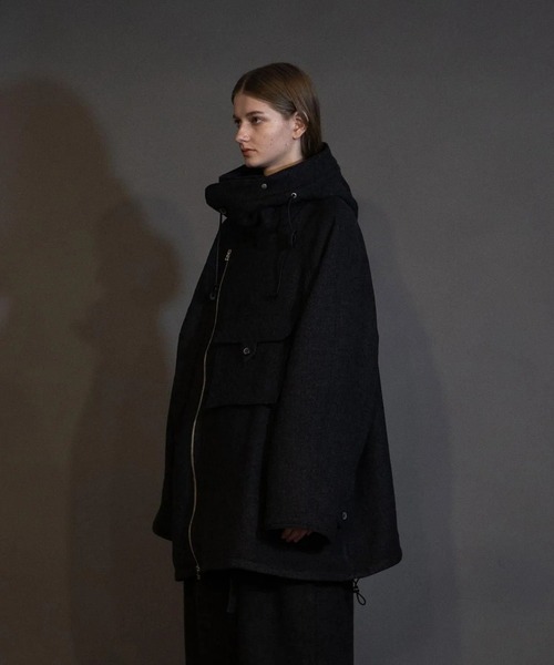 my beautiful landlet 自身が愛着のある物をその時代に落とし込み、共に共有したいとの思い。 シーズン毎にコンセプトは設けず、ブランドとしてのカラー・シルエット・素材選びを大切にしています。 I would like to bring an attached article to this period of era and share them. It is important for me to choose a brand's color, form and material without a seasonal concept. ------------------------------------------------------ 2/24ボタニー繊維(他の羊毛より繊維が細い)の生地を使用したウールシリーズ。 同素材に縮絨起毛した素材をミックスして仕立てている為、高級感があり " 軽さ・柔らかさ・暖かさ" が特徴です。