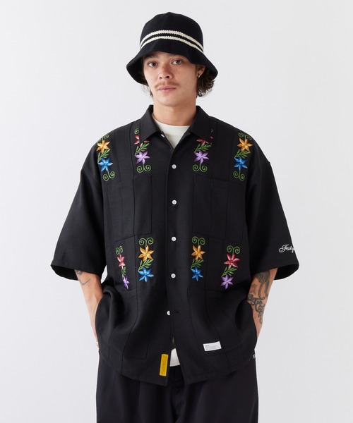 多色仕様の細密なフラワー刺繍が印象的な半袖キューバシャツ。通常よりも身幅・肩幅にゆとりをもたせたBIGシルエットは、ルーズになりすぎないレングスや袖まわりでボリュームのあるボトムスを合わせていつもとは違うカジュアルコーディネートを楽しみたい。袖のロゴ刺繍やポケット上のブランドネームも程よいアクセントに。Qualityシャークスキンクロス
