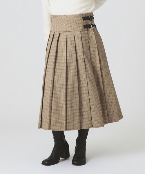 クラシカルな雰囲気をプラス ■デザイン ラップ風デザインのチェック柄スカート。左脇のラップ部分のみ、チェックを斜めにして柄の出方を変えることで抜け感を演出。ウエストの2本のベルトもポイントです。 ■コーディネート ニットや厚手のコートなど、スタイリングが重たくなりがちな冬にぴったりのアイテムです。パンツの上にレイヤードするのもおすすめです。 ■サイズ ハイウエストでも穿けるように、ウエストをややくびれさせています。左脇のファスナーで着脱できる仕様です。 ■素材 さらっと穿きやすいレーヨン混のポリエステル素材。裏地付きです。GREY、BEIGEのベーシックな2色展開で、それぞれで柄の大きさが異なります。 ■ケア方法 ドライクリーニング(詳細は商品についている品質表示ラベルをご覧ください) BEAMS STAFF:H164 Size:1 ※光の当たり具合やパソコンなどの閲覧環境によって実際の色味と異なって見える場合がございます。予めご了承ください。 ※商品の色味は商品単体で撮影した画像をご参照ください。