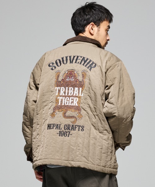 昨シーズン大好評だったTRIBAL TIGERグラフィック刺繍を施した、キルティングコーチジャケットが登場です。襟や袖口裏などの部分的にコーデュロイを使うことで、デザインアクセントになっています。継続品番のスーベニア刺繍キルトJKT(品番:2415104)の生地よりもハリ感のある生地に中綿を入れ、縦キルトを採用したことでデザイン変化をもたらしています。薄中綿入りなので同時に防寒性も高めています。パーカーやシャツ、スウェットなどと気軽にレイヤードコーデが楽しめます。-------------------------シルエット:ややワイド生地の厚さ:中肉透け感:なし伸縮性:なし裏地:ありケア方法:手洗い可-------------------------●KRIFF MAYER(クリフメイヤー)家族みんなの毎日に楽しさと笑顔をお届けしたい。クリフメイヤーの服にはそんな思いがたくさん詰め込まれています。メンズ・レディース・キッズ、更にドッグウェアまで展開。何気ない日々が特別な思い出に変わる瞬間を演出する、ベーシックかつオリジナリティーあふれる新しいデイリーウエアを提案します。