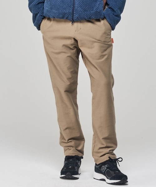 程よく伸びて戻るキックバック性のあるオリジナル「ほどのび」素材を使用したイージーパンツです。 洗濯を繰り返しても型崩れしづらく、裏面は微起毛で暖かな着用感が続きます。 オン/オフ両面で活躍するスラックス風のデザイン。 バックポケットはヒップラインに響きにくい片玉縁ポケットに。 ウエストはゴム+内側のスピンドルでフィット感を調節できるイージー仕様。 ベルト無しでも気軽に穿きまわせます。 表側もふんわり微起毛がかった表情なので、季節感のあるスタイリングに合わせやすいアイテムです。 ------------------------- シルエット:スタンダード 生地の厚さ:中肉 透け感:なし 伸縮性:あり 裏地:なし ケア方法:洗濯機洗い可(ネット使用) ------------------------- ●KRIFF MAYER(クリフメイヤー) 家族みんなの毎日に楽しさと笑顔をお届けしたい。 クリフメイヤーの服にはそんな思いがたくさん詰め込まれています。 メンズ・レディース・キッズ、更にドッグウェアまで展開。 何気ない日々が特別な思い出に変わる瞬間を演出する、ベーシックかつオリジナリティーあふれる新しいデイリーウエアを提案します。