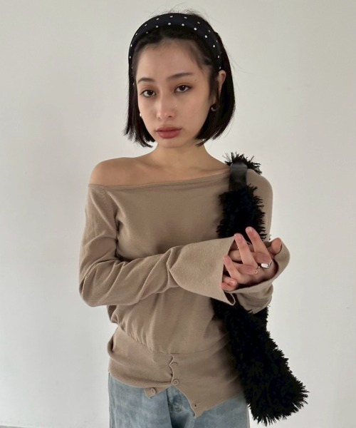 《人気のニットに新色が登場》◻︎POINT・1枚でバランスよく抜け感を演出でき、時短でスタイリングが決まるデザイン・程よくフィットするシルエットで女性らしいラインを演出・裾のボタンディテールがスタイリングにモードなアクセントをプラス・長めの袖リブは、手元を華奢に見せる抜け感あるデザイン◻︎STYLING・スラックスやタイトスカートと合わせてきれいめカジュアルに・デニムと合わせてラフな抜け感スタイルに◻︎COLORブラックグレーモカアイボリー□SIZEフリー------------------------透け感/なし光沢感/なし伸縮性/あり裏 地/なし厚 み/ハイゲージ------------------------※撮影画像はサンプルを使用しているため、実際の商品とカラー、仕様、加工、サイズが若干異なる場合がございます。使用しているパソコンや携帯電話により、実際のカラーと異なって見える場合がございます。予めご了承ください。【ブランド紹介】「DRWCYS」トレンドを加味しながらモード感を残し、媚びないセンシュアルなお洋服を提案いたします。【SNS掲載情報】@drwcys_official公式Instagramアカウントにて新作情報をはじめ多彩なコンテンツを掲載しております。ぜひご覧くださいませ。【お買い物をもっとお楽しみいただくために】▼商品のお気に入り登録▼完売カラーの再入荷通知や、人気アイテムのラスト1点通知、プライスダウンしたセール通知も受け取ることができます。※ご注文いただいた予約商品のお届け時期の確認は、注文履歴ページより行えます。※他のキャンペーンにより、期間中に価格が変動する場合があります。※セールは予告なく終了させていただく場合もあります。
