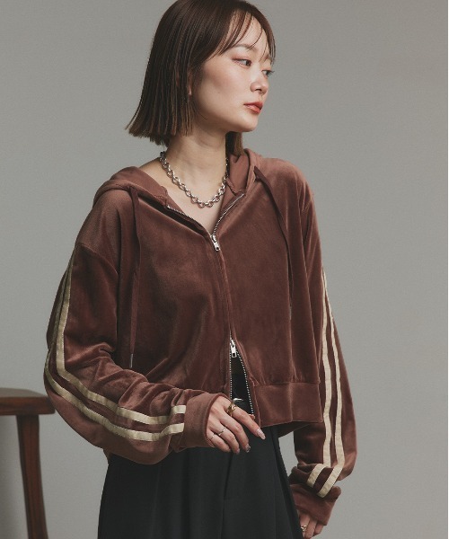 柔らかなベロア素材で魅せる ≪大人のためのベロアジップパーカー≫ トレンド感あるカジュアルスタイルを、ワンランク上に見せてくれる優秀アイテム。 ■point ・袖のダブルラインがスポーティな印象をプラス ・マットなベロア素材でカジュアルになりすぎず、大人っぽい雰囲気に ・ダブルジップで着こなし自由自在 ・フード付きでカジュアルな抜け感を演出 ・ショート丈でスタイルアップ効果も ■detail ベロア素材がシーズンムードを高めてくれるジップパーカー。 袖の配色ラインが縦のラインを強調し、スッキリとした印象とアクセントをプラス。 落ち着きのあるカラーと素材感でカジュアルになり過ぎないので 大人でも着用しやすいのが嬉しいポイント。 ダブルジップ仕様なのでパーカーならではの抜け感のある着こなしが叶います。 ■fabric マットなベロア素材 ……………………………… 伸縮性:あり 透け感:なし 裏地:なし ポケット:あり ……………………………… ■混率 ポリエステル 95% ポリウレタン 5% 原産国:中国 ■coordinate ショート丈なので、ハイウエストパンツと合わせるとスタイルアップ効果抜群◎ ルーズなデニムやカーゴパンツと合わせてスポーティカジュアルに着こなすのはもちろん、 スカートでレディな雰囲気をミックスするのもおススメです。 コンパクトなサイズ感なのでジャケットやアウターのインナーに着用して、 フードを覗かせたこなれレイヤードスタイルもおススメです。 ■SNS情報 @adthie.official 【公式】Instagramでも新着アイテム&トレンドアイテムを毎日発信中!! 洗濯表記 【洗濯処理】 水温30℃を限度に、洗濯機で弱い洗濯ができます 【漂白処理】 漂白できません 【タンブル乾燥】 タンブル乾燥禁止です 【自然乾燥】 日陰で吊り干しします 【アイロン仕上げ】 120℃を限度に、アイロンが使えます 【ドライクリーニング】 ドライクリーニングができません 【ウエットクリーニング】 非常に弱い操作による、ウエットクリーニングができます 【洗濯表記説明文】 つけ置き禁止 洗濯ネット使用 単独で洗う Attention 【お取り扱い上のご注意】 この製品は素材の特性上、着用や洗濯により毛羽が抜けることがあります。 また、摩擦により表面の毛羽が脱落消失したり、白っぽくなることがあります。 以下の点にご注意の上、お取り扱い下さい。 ・着用や洗濯による過度な摩擦はお避け下さい。 ・雨や水に濡れた場合は、こすらずにタオルなどで吸い取るようにして下さい。 ・脱落した毛羽がインナーなどに付着することがありますので、着用は滑りの良い素材との併用をおすすめします。 この製品は配色使いをしております。色移りの原因となりますので、下記の点にご注意の上、お取り扱い下さい。 ・雨などで濡れた場合は長時間放置せず、乾いた布でできるだけ水分を拭き取り、すみやかに陰干しして下さい。 ・水洗いのできる製品は水につけ置くことによって染料が流出しやすくなります。 すみやかに洗濯し、すすぎを十分に行ってから脱水し、形を整えて陰干しして下さい。 ・過度な摩擦等でも移染することがありますので、ご注意下さい。