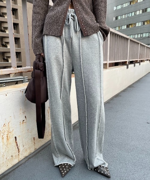 ー ディテール ー トレンドのアウトシームデザインが立体感のあるスウェットパンツ。 ウエストや裾にも断ち切りディテールを施し、ラフでエッジの効いた表情に。 重たすぎず軽すぎない裏毛を採用し、オールシーズン着用可能なアイテムです。 【洗濯に関して】 こちらの製品は乾燥機にかけると縮んでしまう恐れがあるため、必ず絵表示通りに洗濯を行ってください。 縮みに関しては検査機関で基準以内の合格となっております。 返品交換はお受けできかねます為、予めご了承の上ご購入ください。 【色味に関しての注意事項】 商品画像は、ストロボなど撮影機器の使用や光の当たり具合、 お使いのスマートフォンやパソコンなどの閲覧環境により、実際の色味と異なって見える場合がございます。 予めご了承ください。 【SNS動画掲載アイテム】 @aic_official 上記の公式インスタグラムアカウントにて着回し動画を掲載しております。 是非ご覧くださいませ。 ★お取り扱い注意事項★ 下記をご確認いただきご了承の上、ご購入ください。 ・着用中の摩擦などにより、ピリング(毛玉)が生じる場合があります。 ・洗濯の際は色落ちしますので単独で洗い、湿気を含んだ状態や水につけたままで放置しないでください。 ・濃色の製品は、摩擦や汗、雨などで濡れると、ほかの衣料に色移りする場合がございますので、充分ご注意ください。 ・商品の写真はサンプル品を撮影している為、実際の商品とは仕様や加工、加工によるダメージ、サイズ等が若干異なる場合もございます。 ・初回販売分と生産時期の異なる商品は、色味や加工等若干異なる場合がございます。 ・システムの都合上下げ札の税込み価格表記が商品ページの税込み価格と1円ずれている場合がございます。 ・掲載画像の商品の色味は、屋外や屋内の光の照射や角度により実物と色味が異なる場合がございます。 また表示のサイズ感と実物は若干異なる場合もございますので、 ・着用、お取り扱いの際は、商品についている品質表示とアテンションタグを必ずご確認下さい。