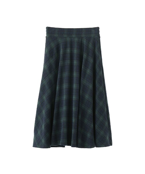 『好きな丈スカート』ブラックウォッチチェック柄のミモレスカートです。しなやかで綺麗なシルエットがでるウール混のカットソー素材を使用してます。ジャガードで編まれたチェック柄なので、カットソー素材ですが、カジュアル過ぎない品のある仕上がりです。前側ウエストをフラットにしています。