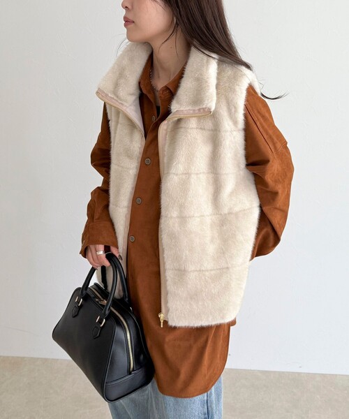 ◇fredy emue◇ 【2025 AW】 ふわふわファーで華やぐボーダーキルトベスト ●point ・ふわふわのファーが魅力的なボーダーキルトファーベスト ・シンプルなディテールで大人が着こなしやすい、甘すぎない雰囲気に ・程よいボリューム感でデイリー使いもしやすく、羽織りやすい軽さも魅力です ・襟付きデザインで、ボリュームのあるファーでもすっきりと見えるシルエット ・ニットやロンTとのレイヤードスタイルにぴったり ・いつものコーデにプラスワンでグッとシーズンムード高まるコーデに仕上がります 透け感:なし 裏地:あり 伸縮性:なし 光沢感:なし 洗濯:水洗い不可 ◇商品のお気に入り登録◇ 気になる商品は、お気に入り登録がオススメです! クーポン情報、入荷情報が、通知されるようになります。 ●お取扱い上のご注意● *商品を長くご愛用していただきたいため、アテンションタグがある場合は必ずご確認の上、着用又はお取り扱い下さい。 *画像の商品はサンプルとなりますので実際の商品と仕様(主にファスナー・釦等の付属品)、加工、サイズが若干異なる場合がございます。 *店頭及び屋外での撮影画像は、光の当たり具合で色味が違って見える場合があります。商品の色味は、スタジオ撮影の画像をご参照下さい。 *商品画像に関しては出来る限り忠実に表示出来るよう努めておりますが、お客様がご利用のモニターの設定及び特性により、実際の商品と比較し色味に若干の誤差が生じる場合があります。 *製品洗い加工の商品は、多少の歪み、シワなどが見られたり、風合いやサイズ等が1枚1枚異なります。汗や雨等で濡れた時や、摩擦により色落ちし、他の衣料を汚すことがありますので(特に濃色のもの)ご注意ください。 *この製品は、生地の特性上引っかかると糸が飛び出しやすい傾向があります。着用時にはベルトやバック、周囲の壁など表面の粗いものとの摩擦や引っかかりにご注意ください。 ※サンプルでの採寸のため、サイズ表はあくまで目安となります。予めご了承ください。