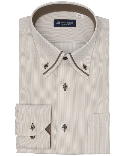 - ニットシャツ - 吸水速乾とストレッチ性能の生地が 日常の快適をサポートします。 経編組織のトリコット生地は横方向への 伸縮性で動きやすさをサポートしつつ、 ハンガー等、吊り下げ時の生地の伸びを 軽減しサイズ変動を抑えられます。 また、ポリエステル100%の速乾性と サラッとした着心地で、どのシーズン でもスッキリとご着用頂けます。 形態安定力も良く、ご家庭での取り扱いも 簡単にして頂け長くご愛用頂ける一枚。 台衿とカフス裏の別布使いに色ボタンを 同系色に統一しながらも、アクセントを 添えた一枚は個性ある衿元を演出します。 衿部分のマイター仕様が上品に衿元を彩り、 顔回りに華やかな印象を与えてくれ、 様々なコーディネイトが楽しめます。 ■仕様 カフリンクス使用可能な兼用カフス (アジャストボタン) 角切カフス 胸ポケット(左胸)付き(ホームベース型) 背タックなし・背ダーツあり 前立:裏前立仕様 衿:デザインあり 台衿内側・カフス裏側:別布仕様 ※伸縮性の強いニット素材の特性上、 サイズ表の寸法は目安となります。 またアイロン掛けや保管の際は、 伸ばさないようご注意ください。 ※こちらの商品は実店舗お持込での 裄(袖)詰めをお受け出来ません。 ※別布を含む濃色生地は色落ち・移染が 発生する場合があるため、お洗濯時は 衣類の組合わせにご注意ください。 ※サイズ[首回り42cm]のお届け商品の縫い付けタグはLL表記、 サイズ[首回り43cm]のお届け商品の縫い付けタグはXL表記でございます。 ZOZOTOWNの検索サイズと異なりますのでご注意ください。 【BRICK HOUSE by Tokyo Shirts / ブリックハウス バイ トウキョウシャツ】業界トップ水準を誇るノーアイロンの形態安定加工は自宅で洗濯可能でお手入れ簡単!高度な縫製技術を用いた高付加価値シャツでありながら選ぶことを気軽に楽しめます。ベーシックから多様なデザインまで幅広いバリエーションで豊富なサイズ展開で、ディテールの隅々にまで織り込んで一枚一枚丁寧に仕立てられたシャツです。