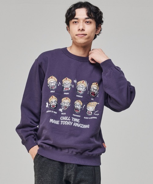 《KRIFF MAYER 秋冬アイテム「チルタイム裏起毛クルー(顔)」》人気のCHILL TIMEシリーズグラフィックをカラープリントしました。アイコンのMr.Kのさまざまな表情と感情が愛らしいグラフィックです。このMr.Kのように毎日さまざまな感情がありますが、MAKE TODAY AMAZING(最高の1日にしよう)の精神でポジティブに生きようというメッセージを込めています。メンズ・レディース問わず、ユニセックス使いもしやすいアイテムです。素材は毎年定番の30/10コットン100%の裏起毛素材を使用。綿100%の裏起毛素材はふわっと肌触りも柔らかく、暖かな着心地です。厚すぎない生地感で1枚着はもちろん、アウターもONしやすいのがポイント。秋から冬、春先までロングシーズンご着用いただけます。今季はデザインとシルエットを一新。ネックは3cm巾の太巾バインダーネックでヘビーデューティー感のある仕上がりを演出。肩下がりを適度につけつつも袖山は低く設計し、肩傾斜から袖のラインが一直線になるように袖付しています。この肩傾斜と袖ラインにより、着用時に肩が張ってしまうことはなく、肩がキレイに落ちるシルエットになっています。袖口と裾口のリブは9cm→6cmのレギュラー巾に戻したことで、クセのないスッキリした見た目に変化しました。また、着用時に自然な生地溜まりを生み出してくれるように、リブのテンションも強めに締め上げたデザインになっています。-------------------------シルエット:スタンダード生地の厚さ:中肉透け感:なし伸縮性:あり裏地:なしケア方法:洗濯機洗い可(ネット使用)-------------------------●KRIFF MAYER(クリフメイヤー)家族みんなの毎日に楽しさと笑顔をお届けしたい。クリフメイヤーの服にはそんな思いがたくさん詰め込まれています。メンズ・レディース・キッズ、更にドッグウェアまで展開。何気ない日々が特別な思い出に変わる瞬間を演出する、ベーシックかつオリジナリティーあふれる新しいデイリーウエアを提案します。