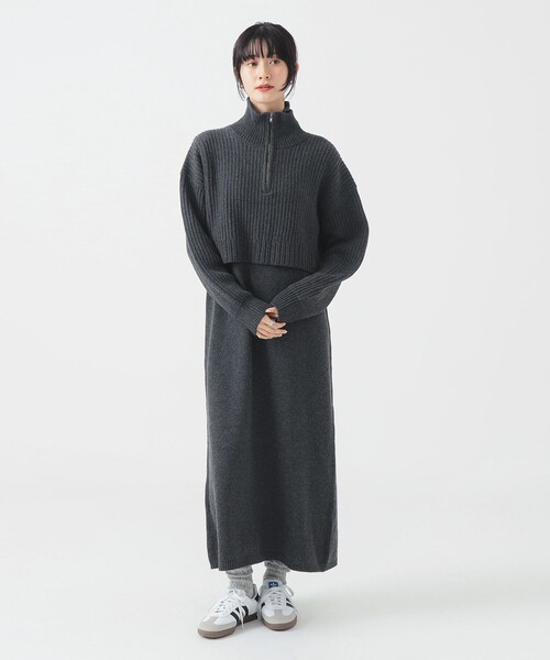 1枚で決まるワンピース■デザインまるでレイヤードしているかのようなデザインのニットワンピース。トレンドのハーフジップがアクセントになり、開閉によって着こなしの変化を楽しめます。全体的にゆったりとしながらも、上身頃を短めにすることで、足長効果が期待できます。■コーディネート1枚で着るのはもちろん、薄手のタートルネックインナーなどをレイヤードして、ジップを開けてチラ見せするスタイルもおすすめ。合わせる小物によって、きれいめにもカジュアルにも着こなせます。■サイズゆったりとしたサイズ感で、体のラインを拾いにくく、リラックスして着用いただけます。■素材ラムウールを配合したニット素材を使用しており、柔らかく、ふっくらとした肌触りが特徴。■ケア方法手洗い可(詳細は商品についている品質表示ラベルをご覧ください)【IVORY】Model:H172 B79 W60 H88 Size:M【GREY・BROWN】Model: H166 B72 W59 H82 Size:M※光の当たり具合やパソコンなどの閲覧環境によって実際の色味と異なって見える場合がございます。予めご了承ください。※商品の色味は商品単体で撮影した画像をご参照ください。◆お気に入り登録のおすすめ◆気になる商品には「お気に入り」登録がおすすめです!登録していただくと再入荷のお知らせやセール通知など、商品の最新情報が届きます。またマイページでいつでも確認が可能になります。お得な情報が届くこともありますので、是非ご活用ください。