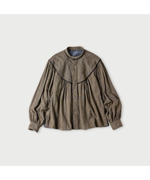 働く人の相棒として、長年愛されてきたコットンネルを毎年こつこつ作り続けています。今年は渋くどこか懐かしい色合い。ふっくらと掻いて裏起毛させ、ウールのようにあたたかくてジャブジャブ洗える素材です。伝統的な格子柄にインディゴ糸を織り込んで、立体的な深みを出しました。ラウンドヨークはバイアス使い。ギャザーをたっぷり寄せました。袖を通せば気持ちはウキウキ。タンバリンを叩きながら踊り出したくなります。