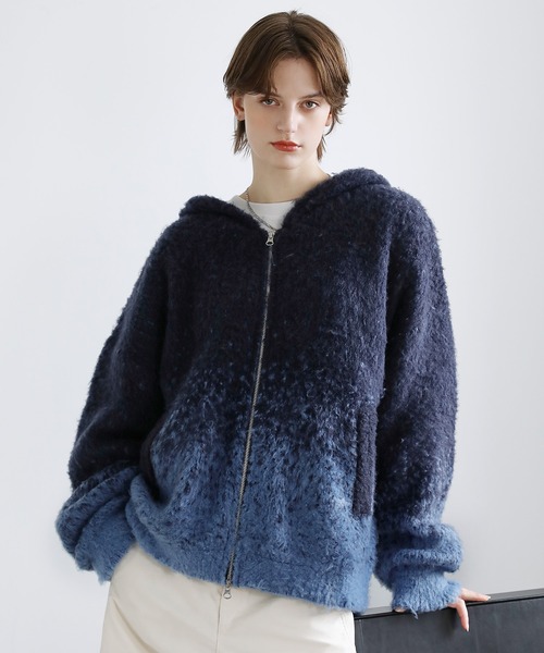 ■アイテム説明 裾や袖口に向かって自然に色がほどけていくようなグラデーションが魅力のニットパーカー。 ポリエステル100%の軽やかな素材で扱いやすく、普段使いにぴったりの一枚です。 肩の落ちたドロップショルダー、ワイドな身幅やボリュームのある袖幅に短丈など、トレンドのシルエットをしっかり押さえました。 ふっくらと滑らかな肌触りと暖かさが心地良く、秋冬シーズンに欠かせないマストな1着です。 カラーは着まわしやすいブラック、ブラウン、ネイビーに鮮やかなミントの4色展開。 奥行きを与えるグラデーションが印象的で、カジュアルスタイルに抜け感をプラスします。 ユニセックスで着用可能なので、男女問わず旬のコーディネートをお楽しみいただけます。 ■素材 毛足のあるポリエステル100%のニット素材は、軽量で肌触りがよく伸縮性があり動きやすさも抜群。 チクチク感がなく柔らかな着心地で、ふっくらと厚みのある生地は見た目にもウォーム感を与えます。 ■コーディネート 存在感のあるデザインなので、シンプルなボトムスに合わせて少しアクセサリー類をプラスするだけでも洗練されたコーデに。 やや短めの丈感に対してボディ周りをワイドに取ったシルエットがバランス良く、ボトムを選ばずデイリーに活躍します。 ■商品詳細 透け感:なし 裏地:なし 光沢:なし 伸縮性:あり ■ブランド説明 独自のコンセプトとデザイン性を トレンドに落とし込んだカジュアルウェアを提案 ※商品画像は、光の当たり具合やパソコンなどの閲覧環境により、実際の色味と異なって見える場合がございます。予めご了承ください。 【お買い物をお楽しみいただく為に】 ▼商品のお気に入り登録 完売カラーの再入荷通知や、ラスト1点の通知、セールの通知も受けることができます。 ▼ブランドのお気に入り登録 新商品や再入荷等、いち早くブランドのお得な情報を受け取ることができます。