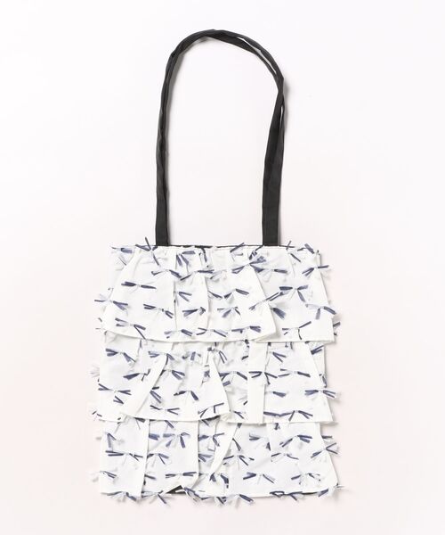 両面に異なるジャカードを施したトートバッグ。 ジャカードのフリルをティアードに重ねた面と、ジャカードをシンプルに施した面の両方を楽しんでいただけます。 カラーによってジャカードの組み合せが異なるため、特別感のあるアイテムになっています。 ドット釦付きで、中の荷物が外から見えにくいのも嬉しいポイントです。 お手入れ:洗濯不可 店舗へお問い合わせの際は、下記の品番をお申し付け下さい。 [品番:31010354]