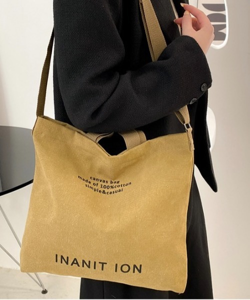 ナチュラルな風合いが魅力のコットン100%キャンバスバッグ INANIT IONのロゴと控えめなプリントが、カジュアルスタイルにさりげないアクセントを添えます。 持ち方は2WAY。短めハンドルで手持ちに、調節可能なショルダーストラップで斜め掛けや肩掛けにも対応。 マチが程よくデイリーの荷物をしっかり収納します。 トップはジッパー開閉で中身を安心して持ち運べるのも嬉しいポイント。 シンプルだからこそコーデを選ばず、通学や通勤、買い物、週末のお出かけに活躍します。 丈夫で使い込むほどに味が出るキャンバス素材は、長く寄り添う相棒バッグにおすすめです。 重さ…約270g バッグ…横幅:38cm|高さ:32cm|マチ(厚み):7cm *手作業での採寸のため、2〜4cm程度の誤差が生じる場合があります。 <5色カラー展開> シックなブラック クラシックなダークブラウン アーバンなグレー フォレストグリーン ナチュラルなベージュ ※カラーによっては多少の色ブレが生じてしまう可能性がございますことをご了承くださいませ。 ※撮影時の光や角度、お手持ちのモニター環境などにより、実物と色味が多少異なる場合がございます。 また表示のサイズ感も、採寸者によりましては、多少異なる場合もございますので、予めご了承ください。