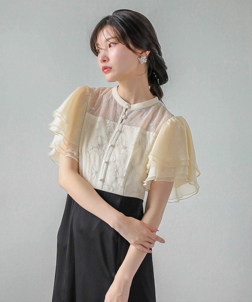 ひらひらと重なったラッフル袖と洗練されたシルエットが しとやかでフェミニンな魅力溢れる佇まいに ■point ・甘さと大人っぽさを兼ね備えたワンピースドレス ・オーガンジーのふんわり袖が可憐で女性らしい雰囲気 ・柔らかさを感じる花柄刺繍が清楚な印象に ・デコルテの上品な透け感が肌をキレイ魅せ ・動く度に揺れるフレアスカートがエレガント ・一枚で着映えする華やかさ ■detail ・ボタンをあしらうことできちんと感を演出 ・美しい曲線を描く袖デザインが気になる部分をさりげなくカバー ・ハイウエストの切り替えデザインでスタイルアップ効果◎ ・タイトすぎず綺麗にボディラインを拾い レディーライクな雰囲気を演出 ・フォーマルからデイリーまで幅広いシーンで着用可能◎ ■fabric ・さらりと軽い生地感 ・後ろゴム仕様 ・伸縮性なし ・バックファスナー仕様 ■wearing scene お出かけ ショッピング 誕生日 結婚式 二次会 披露宴 お呼ばれ 成人式 同窓会 女子会 2次会 謝恩会 パーティー デート 演奏会 発表会 入学式 卒業式 司会 お宮参り 七五三 ■サイズ比較画像のスタッフ着用コメント 【 154cm / 普段着 SS or S / 骨格ウェーブ 】 S : 綺麗に着用できる。ヒールは必須。 M : 丈が長く普段Mサイズの方はSがオススメ。 【 159cm / 普段着 M or L / 骨格ストレート 】 S:丈感もジャストサイズで綺麗に着れる。 M:ウエスト周りに少しゆとり有り。 【 162cm / 普段着 M / 骨格ストレート 】 S :少し小さく感じる。丈感問題なく着用可能。 M : 丁度良い着心地。綺麗に着れるサイズ感。 ーーーーーーーーーーーーーーーーーーーーーーーーーーー ★お気に入り登録でお得な情報を受け取れます★ ●商品のお気に入り登録 再入荷、ラスト1点、セール通知 ●ブランドのお気に入り登録 新商品、再入荷、おすすめトピックなどショップ独自の情報 ーーーーーーーーーーーーーーーーーーーーーーーーーーー ―― Kana ―― 一輪の花のように自分自身の意思を持ちたい女性の理想を叶えるブランド。 花びらのような華やかさと 一本筋の通った芯のある自分になれる。 新作情報や着用動画など お得な情報はInstagram公式アカウントからチェック! ↓ @kana.dress.official