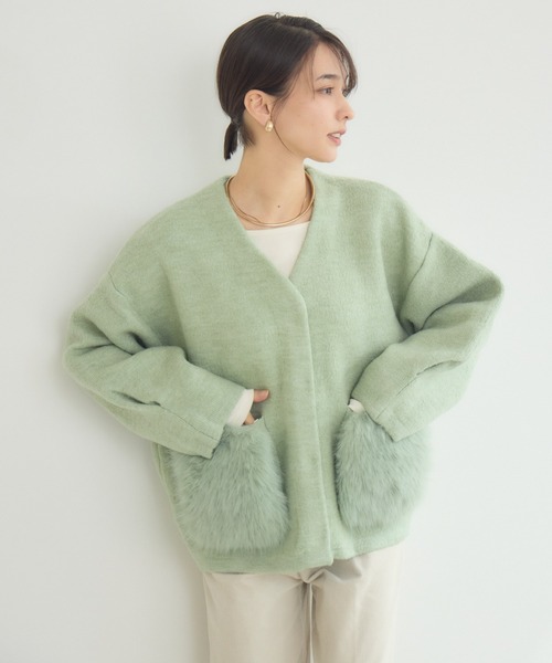 【KATHARINE ROSSオリジナル】 ジャケットライクな存在感でファーポケットが華やぐ一枚 [素材] ・目の詰まった7ゲージのダブルフェイスニットを使用。。 ・しっかりとした肉厚感で、ニット特有の伸縮性と柔らかさをしっかりキープ。 [デザイン] ・フロントのポケットには、ふわふわのファーディテールをON。 ・気分やコーディネートに合わせて、着脱可能なファーを使い分けられるのもポイント。 ・身幅・袖幅ともにゆったりとしたシルエットで、リラックス感のある着心地。 ・ボリュームボトムやワンピースともバランス良く合わせられる、計算されたショート丈。 [スタイリング] ・デニムと合わせて、こなれたカジュアルダウンコーデに。 ・ロングスカートやワンピースに羽織って、大人フェミニンなレイヤードに。 ・ワイドパンツにインナーはシンプルなニットで、旬のゆる×ゆるバランス。 ■光沢感:なし ■透け感:なし ■伸縮性:あり ■生地の厚さ:厚手 ※照明や光の当たり具合で色味が違って見える場合があります。 ※システムの都合上、店舗より入荷が遅れる場合がございます。 【お買い物をよりお楽しみいただくために】 ・商品のお気に入り登録をおすすめします! ♡マーククリックで登録できます。 完売カラーの再入荷や、ラスト1点になったときの通知、 セールの際に通知などお得な情報を受けることができます。 ・ブランドのお気に入り登録もご一緒にお願いいたします! 新商品や再入荷、などいち早くブランドの最新情報をお届けします。