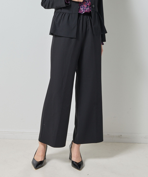 ゆとりのあるワイドシルエットのデザインが美しい脚のラインを演出するパンツ。動きやすく軽やかな着心地で、ソフトな風合いが魅力的です。ウエストはゴム仕様になっているため、締め付け感がなくフィット感のある着心地を実現。様々なアイテムにコーディネートしやすい万能アイテム。同素材のジャケット(30-52-21- 738)と合わせて、新しいセットアップスタイルもおすすめです。・カラー展開はグレー、ブラック、ベージュ・サイズ展開は1(M)9号・3(2L)13号
