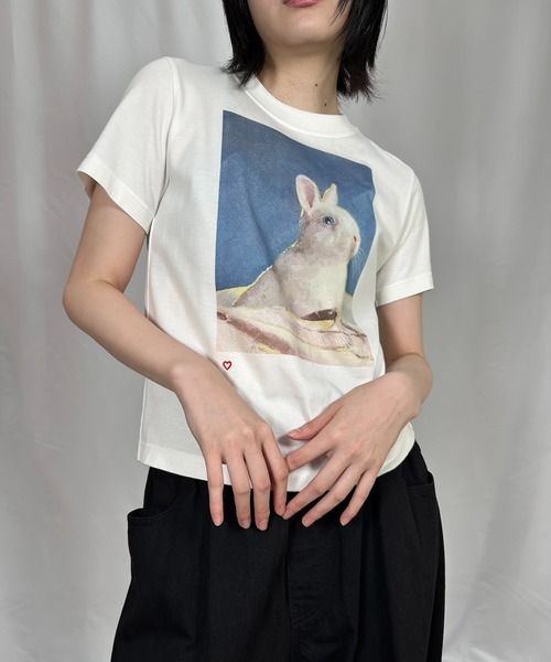 G.V.G.V.× Usagi BonjourコラボレーションTシャツSKY BLUE IN RABBIT TEE【Fabric】ベーシックな40/2天竺素材。目面の揃ったキレイな表面感、やや薄手で程よいハリコシが特徴。伸縮性あり。透け感なし。【Design】白いウサギに映える気持ちの良い綺麗なスカイブルーを背景にした爽やかな印象のイラスト。ウサギ好きにはたまらないおすすめの一着。GVGV(ジーヴィジーヴィー)×イラストレーターUsagi BonjourさんとのスペシャルコラボレーションによるTシャツコレクション本コレクションでは、Usagi Bonjourさんが描くキュートでありながら写実的な動物たちのイラストÄb0をフィーチャー。まるで写真の様に動物たちの表情や毛並みが感じられ、身につけるだけで思わず微笑んでしまうようなデザインに仕上がっています。 <Usagi Bonjour> 東洋美術学校卒業。アンティークのウサギのぬいぐるみにインスパイアされて大好きな動物の絵を描き始める。画材はアクリル絵の具、木炭鉛筆、色鉛筆、クレヨン、パステル、顔料インクの筆ペン等。