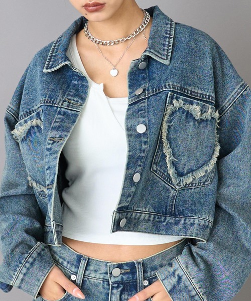 甘さとヴィンテージ感が交差する、旬顔デニムジャケット。●コンパクトなクロップド丈でスタイルアップを叶えるデニムジャケット。●フロントに施したハートフリンジのポケットが、遊び心のあるアクセントに。●カジュアルながらもこなれた印象を与える、バランス感の優れた一枚です。♦detailしっかりとしたデニム素材でシルエットをキープしつつ、軽やかに羽織れる程よい厚み。ハートフリンジのディテールが立体的な陰影を生み、ヴィンテージライクなムードを演出します。短丈デザインがウエスト位置を高く見せ、パンツ・スカート問わず相性抜群。同素材のデニムパンツとのセットアップで、よりトレンド感のある着こなしに。♦styling〇韓国ストリート系 → ハイウエストデニムと厚底スニーカーで、Y2Kテイストにまとめて。〇シティカジュアル系 → シンプルなタンクとワイドパンツで、抜け感のあるミニマルスタイルに。〇フェミカジュアル系 → チュールスカートやカラーニットを合わせて、甘辛MIXな雰囲気を楽しんで。♦コーデにオススメハートフリンジ パッチポケット バレルレッグ デニム(792-9387)ワッペンロゴ裏毛スウェットジップパーカー(794-9380)-----------伸縮性・・・なし透け感・・・なし光沢感・・・なし生地の厚さ・・・普通ポケット・・・あり裏地・・・なし-----------※デニムの為、一点一点風合いが画像と多少異なる場合がございます。予めご了承ください。※この商品は非常に色落ち、色移りしますので十分ご注意ください。※商品のお取扱いに関しましては、商品に付属のアテンションカード、洗濯ネームをご覧ください。※モデル着用画像は光の当たり具合で色味が違って見える場合がございます。※商品の色味の目安は、商品単体の画像をご参照ください。【お買いものをお楽しみいただく為に!】▼商品のお気に入り登録完売カラーの再入荷通知や、ラスト1点の通知、セールの通知も受け取ることができます。▼ブランドのお気に入り登録新商品や再入荷など、いち早くブランドのお得な情報を受け取ることができます。