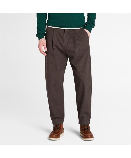 品よく動ける、クラシックチノ。快適さと耐久性を兼ね備えたヘリンボーンパンツ。クラシックなプリーツ入りチノスタイルに、ヘリンボーン織りの上品な風合いを加えた一本。耐久性がありながらも快適な履き心地。ボタン&フライ仕様のフロントに、サイドポケットを備えた実用的なデザイン。アクティブな日常にも、きちんと感を求めるシーンにも対応できる、汎用性の高いパンツです。 カジュアルにもビジネスカジュアルにも馴染む、タイムレスな一本としてワードローブに加えたいアイテムです。・ファブリック:織地・コットン100%・フィット:ルーズ テーパード・レザーバッジ・ウエストボタンとフライ開閉・サイドポケット