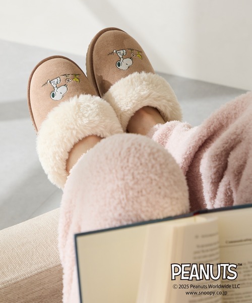 《ORiental TRaffic×PEANUTSデザインアイテム》世界中で愛されるPEANUTSの仲間達とのコラボレーションアイテムが登場!甲をすっぽり覆うスリッパは、スヌーピーとウッドストック、チャーリーブラウンのアートを大きく刺繍した愛らしいデザインに。アートの色使いを、それぞれアッパーの色味に合わせたのもこだわりポイント。履き口やインソールにたっぷり使用したふかふかのフェイクファーが足を優しく包み込み、しっかり保温してくれる。程よく厚みのあるソールで歩きやすく、室内を快適に過ごせるアイテムはお家時間に大活躍する1足。※こちらはクーポン対象外商品となります。【サイズ】M:23-23.5cmL:24-24.5cm