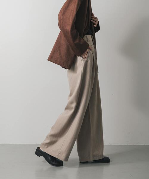 【スタイルアップも叶う。ヘリンボーンワイドパンツ】 ・ハリのあるヘリンボーン素材が、上品で高見えする印象 ・ウエストがすっきり見えるデザインで、スタイルアップ効果も期待 ・オンオフ使いやすい、きれいめなワイドシルエット ハリのあるヘリンボーン素材を使用した、上品なワイドパンツ。ウエスト周りがすっきり見えるデザインなので、タックインしても美しく決まります。きれいめなシルエットながら、程よいゆとりがあるため、オフィススタイルから休日のカジュアルまで幅広く活躍。穿くだけで洗練された印象になる一本です。 【2025 Autumn/Winter】【25AW】 ※商品画像は、光の当たり具合やパソコンなどの閲覧環境により、実際の色味と異なって見える場合がございます。予めご了承ください。 ※商品の色味の目安は、商品単体の画像をご参照ください。 ▼お気に入り登録のおすすめ▼ お気に入り登録された商品は、マイページにて現在の価格情報や在庫状況の確認が可能です。 お買い物リストの管理にぜひご利用ください。 素材感 透け感 : なし 伸縮性 : なし 裏地 : なし 光沢 : なし ポケット : あり MS