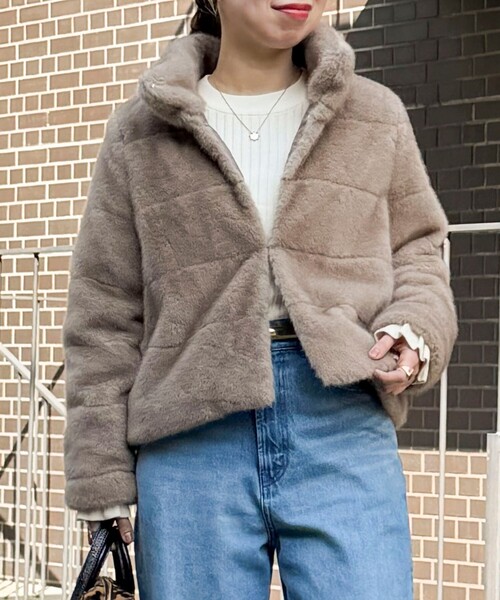 ◇25AW◇MICO COULIERリッチ&上品ムードを高めるファーブルゾン◆Point・ふわっとした短毛の毛足で取り入れやすいボリューム感のフェイクファーアウター・ミンクライクな質感と滑らかな肌触りで、上品&高見え・ボーダー状のキルトデザインが抜け感をプラス・薄手の中綿が入っており、温かさはもちろん着心地も優秀・スタンドネックで顔まわりを優しく包み込み、冬もあたたか&小顔効果も○・フロントホックで開閉しやすく、開けて着ても見え感すっきり・両サイドにポケット付き・ショート丈でバランスよく、パンツにはもちろんスカートやワンピースとも好相性・着ぶくれしないサイズ感&シルエットでデイリーユースにおすすめ・シンプルデザインで飽きがこず長く愛用できるファーアウター----------------------------------------------------------透け感:なし裏地:あり伸縮性:なし光沢感:なし洗濯:ドライクリーニング----------------------------------------------------------気になる商品は、お気に入り登録がオススメです!クーポン情報、入荷情報が通知されるようになります----------------------------------------------------------●お取扱い上のご注意● 末永くご愛用頂くために、アテンションタグを必ずご確認の上、着用又はお取り扱い下さい。※店頭及び屋外での撮影画像は、光の当たり具合で色味が違って見える場合があります。商品の色味は、スタジオ撮影の画像をご参照下さい。※商品画像に関しては出来る限り忠実に表示出来るよう努めておりますが、お客様がご利用のモニターの設定及び特性により、実際の商品と比較し色味に若干の誤差が生じる場合があります。※製品洗い加工の商品は、多少の歪み、シワなどが見られたり、風合いやサイズ等が1枚1枚異なります。汗や雨等で濡れた時や、摩擦により色落ちし、他の衣料を汚すことがありますので(特に濃色のもの)ご注意ください。