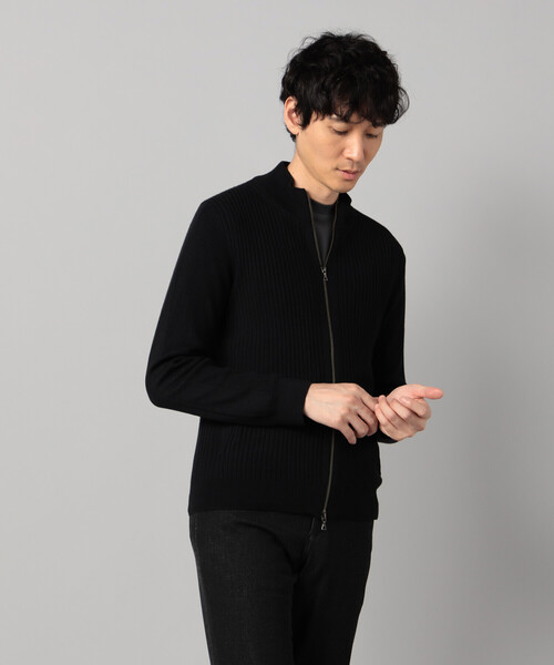 《デザイン》上質な糸をハイゲージ(14G)のリブ組織で編み立てた、シンプルなドライバーズニットです。タイトですっきりとしたシルエットで薄手ですので、ジャケットインにぴったりなアイテムです。ドライバーズニットは本来ポケットが無く、上からのみのオープンファスナーが一般的ですが、下からも開くダブルジップにアレンジして腰ポケットを付けることで、便利なアイテムになっています。袖山部分のみライン状に編み地を変えているのが、さりげないアクセントです。《素材》イタリアで200年の歴史を持つ老舗「FILIVIVI(フィルビビ)」社のGRSリサイクル素材を使用しています。柔らかさのあるウールを混紡した良質感ある風合いと、光沢感、発色の良さが特長です。ファインゲージの糸でとても綺麗な目面ながら、ウール混ならではの軽く膨らみのある風合いになっています。(GRSとはグローバルリサイクルスタンダードの略で、リサイクルの内容、流通過程、化学物質の使用制限などに関する第三者承認の要件を定める国際的、自主的な製品規格です。)